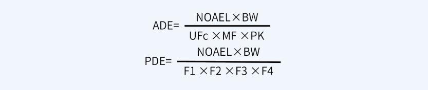 在可以獲得可接受日暴露水平(ADE) 或允許日暴露量(PDE) 值時(shí) ,可采用ADE或PDE值計(jì)算最大允許殘留量(MACO)。