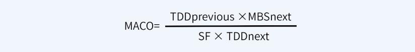 其次,根據(jù)ADE值或PDE值計(jì)算MACO值,計(jì)算公式如下:
